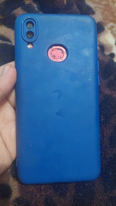 Smartfon – damla tipli ön kamera çıxıntısı olan ekran, arxa tərəfdə ikiqat kamera və LED işıq. Telefon mavi qoruyucu korpusla təqdim olunur.
