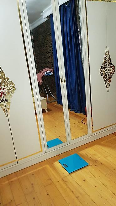 cox az istifade olunub Yataq otağı mebel dəsti – krem rəng, qızılı detallar Dəst tərkibi: - Geniş 6 qapılı qarderob: mərkəzdə 3 ədəd güzgülü qapı, daxildə asılqan və rəf bölmələri - İkinefəslik ça...