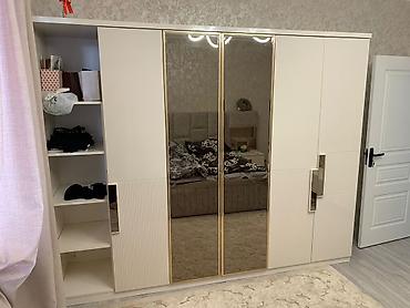 Yataq otağı mebel dəsti Komplekt tərkibi: - 4 qapılı qarderob: ortada 2 böyük güzgü qapı, şaquli rellefli fasadlar, tünd rəngli tutacaqlar; iç hissədə asılqan bölməsi, rəflər və paltar yığımı üçün...