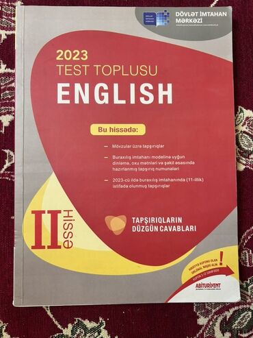 English kitabları: Test Mətn listening Reading hər şey var. Heç işlənməyib. Biri 5 azn. İkisini alanda 8 azn.
