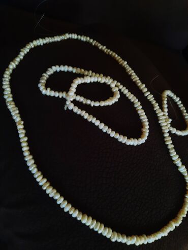 Təbii inci dəst – uzun boyunbağı və qolbaq - material: yumurta