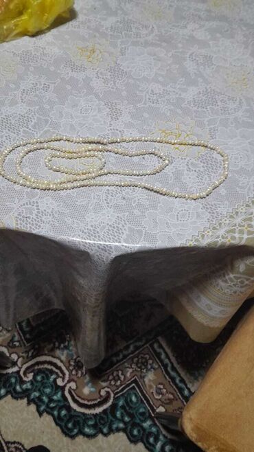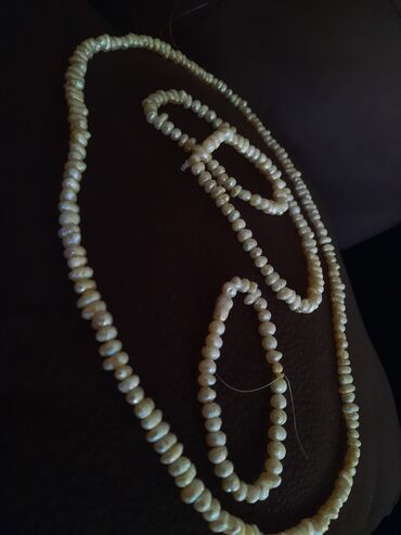 Təbii inci dəsti – boyunbağı və qolbaq - Material: ağ rəngli, sulu parıltılı təbii incilər - İnci forması: yumru/oval, vahid ölçülərə yaxın - Boyunbağı: iri ölçülü incilərdən düzülmüş, metal maqni...