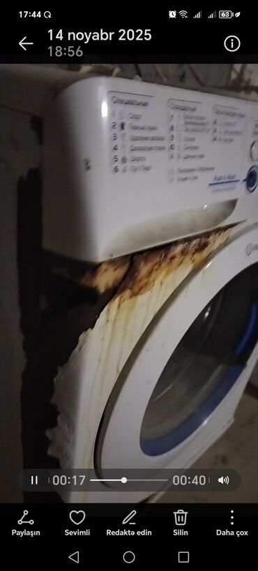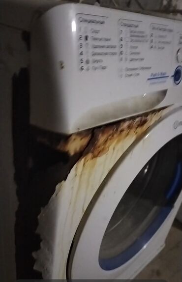 - Korpusun sol-ön hissəsində paslanma və yanıq izləri görünür; plastik və metal səthlərdə zədələr var.