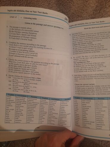 - Bölmələr üzrə “Listening tasks”, “Read the passage and answer”, “Choose the correct variant”, “Complete the sentence” tipli suallar