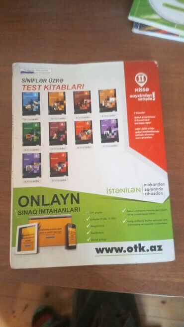 - Arxa səhifədə siniflər üzrə digər test kitabları və onlayn sınaq imtahanları haqqında məlumat (www.otk.az linki göstərilib)