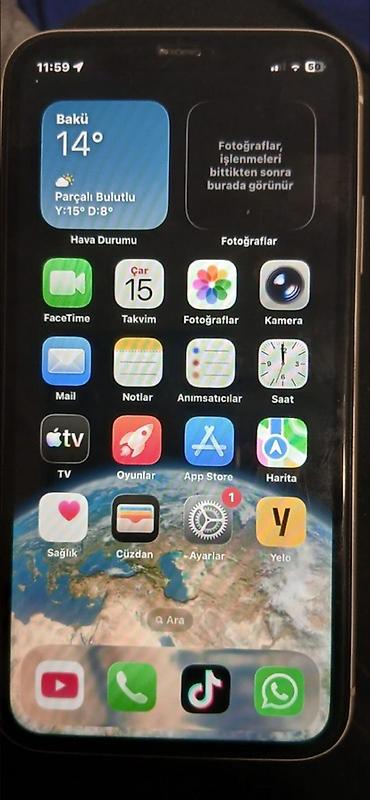 IPhone 11 – 64 GB, ağ rəng feisait tiliton işlekdir ekran orjinaldi pil 70 xirda cızlqlar var arxada ekranda prablem yoxdur antiudar taxılib