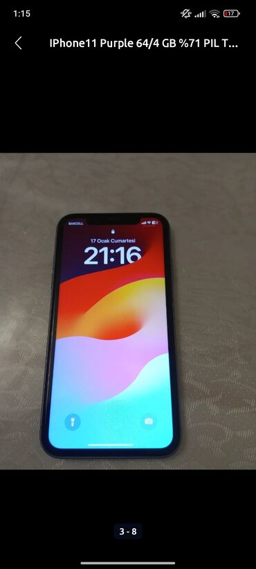 128 yaddaş 74 pil heçnə dəyişilmiyib zavod ideal telefon xanım telefonu olub əla vəzyətdədir Təcili satılır Apple iPhone 11 – bənövşəyi rəng - Ekran: 6.1" Liquid Retina HD (True Tone, Haptic To...