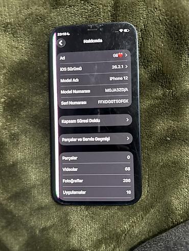 Məhsul: Apple iPhone 12, mavi rəng Model nömrəsi: MGJ83B/A Yaddaş: 64 GB (mövcud sərbəst: təqr. 36,82 GB) iOS versiyası: 26.1 Ekran və dizayn: - 6.1 düym Super Retina XDR OLED ekran - Düz kənarlı ...