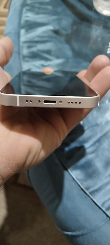 Apple iPhone (ağ rəng). Şəkillərdə göstərilən model kompakt ölçülü, küncləri düz dizaynlı, arxada ikiqat kamera modulu və LED fləş ilə gəlir. Ön tərəfdə Face ID üçün TrueDepth kamera kəsiyi var. Ə...