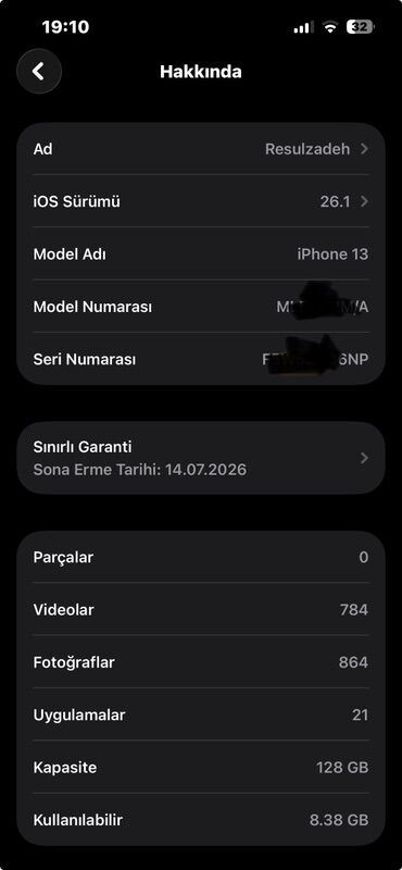 - Model: iPhone 13 (model nömrəsi şəkillərdə göstərilib)
