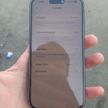 - Batareya məlumatı (şəkildən): Pil Sağlığı – Normal; Maksimum tutum 99%; Dövrlər 28; İstehsal tarixi – Kasım 2025; İlk istifadə – Şubat 2026