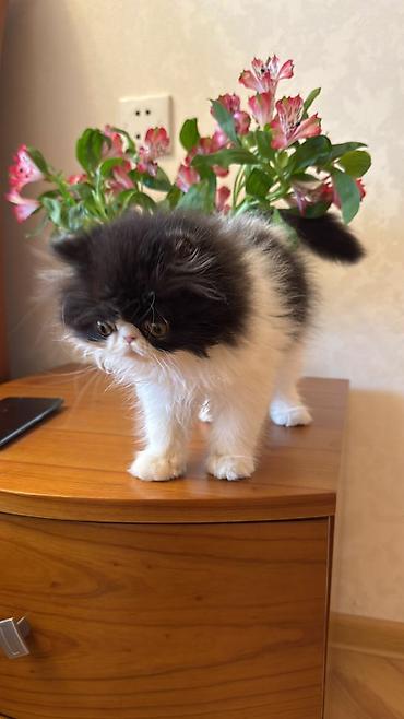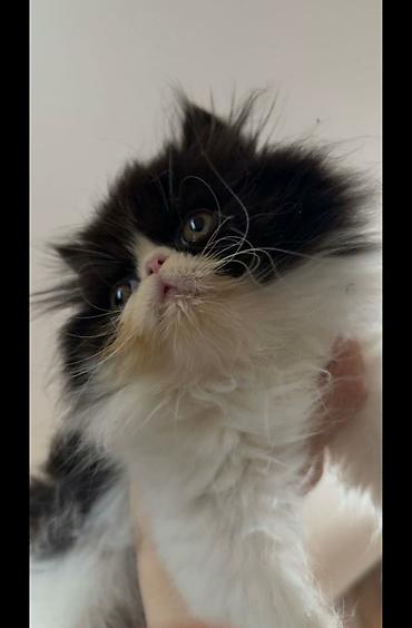 erkekdi 1o aylig qisrlsdmisam xəstəyem deyə baxa bilmirəm qulluğu edə bilmirəm çox ucuz qoymuşam əsyasda var Persian pişiyi balası – uzun, ipək kimi tüklü, qara-ağ rəng çaları ilə. Yastı üz quruluşu, iri ifadəli gözlər, balaca çəhrayı burun və üçrəngli (qara/ağ/krem) ağız ətrafı. Sakit, mehriban xasiyyətə uyğun cins; mənzildə rahat yaşayır, uşaq və digər heyvanlarla uyğunlaşmağa meyllidir. Mütəmadi daraqla daranma və göz-burun təmizliyi tələb edir. Keyfiyyətli quru və yaş yem rasionuna uyğundur. Daxili ev pişiyi kimi saxlanılması, nəqliyyat daşıyıcısına və qapalı qum qabına tez öyrəşir. Fotoşəkildəki balanın tükləri qalın və həcmli, bədəni kompakt, qulaqları kiçik, quyruğu bol tüklüdür. Şəkildə gördüyünüz pişik balasıdır.