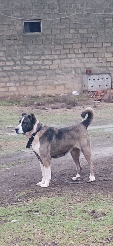 Məhsul: Böyük cins it (mərkəzi asiyalı tipli, ağ-qəhvəyi rəngli) Təsvir: - Güclü, iri bədən quruluşu; möhkəm skelet və əzələli ayaqlar - Qalın, ikiqat tüklü örtük: əsasən ağ fon üzərində qəhvəyi l...