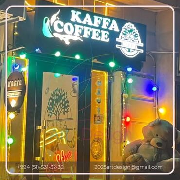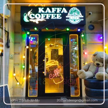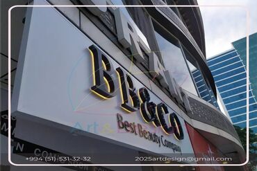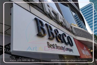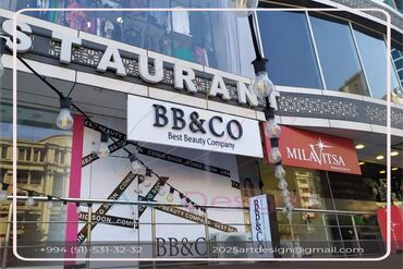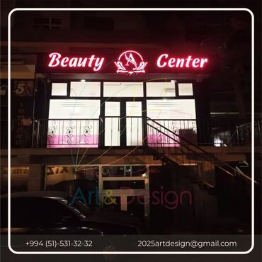 - Gündüz və gecə yüksək görünürlüyə malik LED işıqlı lövhələr (məsələn, “Beauty Center”, “Kaffa Coffee” kimi).