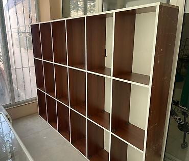Açıq rəngli çoxfunksiyalı kitab/saxlama rəfi - Material: laminat/LDSP tipli ağac teksturalı səth - Rəng: açıq bej/ivory, ağ haşiyələr - Konstruksiya: - Üstdə 8 ədəd kvadrat bölmə (dekor, kitab, ...