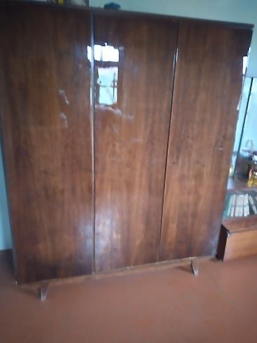 - 3 qapılı paltar şkafı: Geniş tutumlu, tamhündür konstruksiya, taxta ayaqlar, parlaq taxta fakturası.