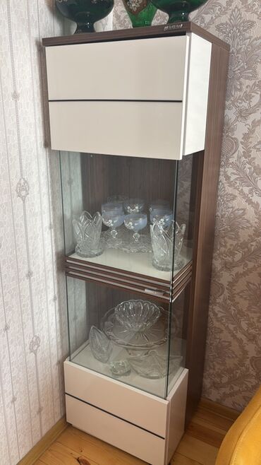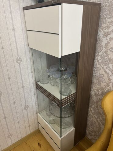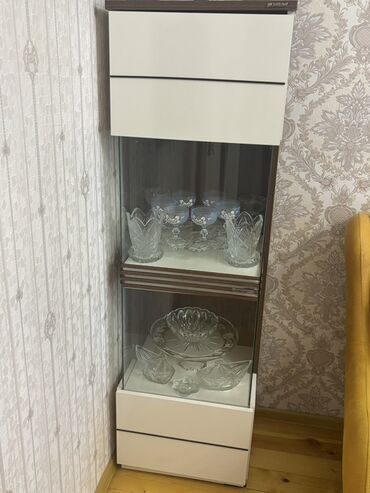 Şüşə vitrın şkaf satılır. İki Ədəddir , ela vəziyyətdədir. Biri 80 manata satılır, Türkiyə istehsalı mebeldir, Alfemo firmasınındir - Dizayn: Ağ çərçivə və taxta teksturalı arxa panel ilə müasir ...
