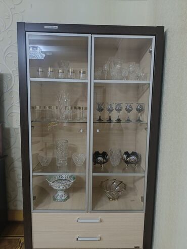 - 2 qapılı geniş vitrin (şüşəli cüt qapı, çoxsəviyyəli şüşə rəflər)