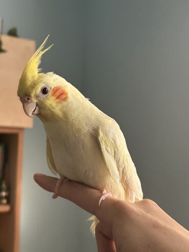 Növ: Nimfa tutuquşu (cockatiel), açıq sarı rəng, yanaqlarda narıncı ləkələr, başında xasiyyətvi çökəklik/toqqa. Xüsusiyyətlər: - Əllə ünsiyyətə öyrəşib, çiyin və əl üzərində rahat dayanır. - Sakit ...