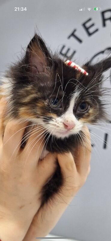 Sahibləndirilir❗️ Ev pişiyi (dişi) 1,5 aylıq Təsvir: - Şirin, yumşaq tüklü, qara-ağ-qonur qarışıqlı (tabby və calico naxışlı) balaca pişik - Yaş: balaca (yeni-yeni oynaq mərhələdə) - Xasiyyət: meh...