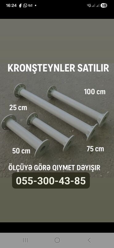 - Kronşteynlər: 25 sm, 50 sm, 75 sm, 100 sm ölçülərdə mövcuddur. Ölçüyə görə qiymət dəyişir (şəkildə qeyd edilib).