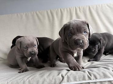Boz və qara rəngli Cane Corso balaları. Bu it cinsi öz sədaqəti və güclü xarakteri ilə tanınır. Evinizi və ailənizi qorumaq üçün əla seçim ola bilər. 45 günlükdürlər hal hazırda. Safqan, sağlam, ir...