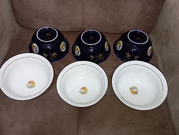 Porselen şirniyyat/süfrə kasaları 55 eded razilaşmaqda olar - Material: keyfiyyətli porselen - Rəng: içi klassik ağ, kənarında qızılı detallarla bəzədilmiş qırmızı dekorlu haşiyə - Naqış: ornamentl...