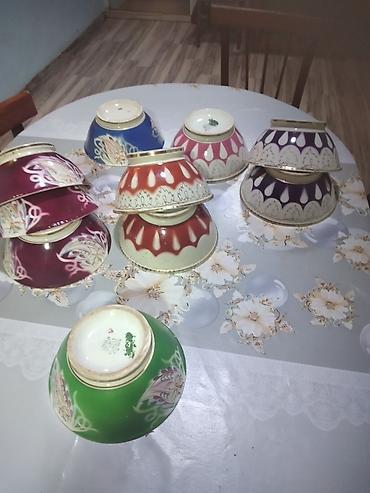 Rəngarəng porselen kasalar dəsti - Material: keyfiyyətli porselen - Rənglər: yaşıl, göy, bənövşəyi, qırmızı, bordo və krem tonları - Dizayn: qızılı haşiyələr, ornamental naxışlar və klassik motivl...