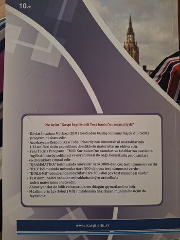 Ingilis dili Kaspi test bankı qrammatika oxu mətn. SD var .Abituriyent və müəllimlər üçün təzədir .heç islenmeyib. Əla kitabdir