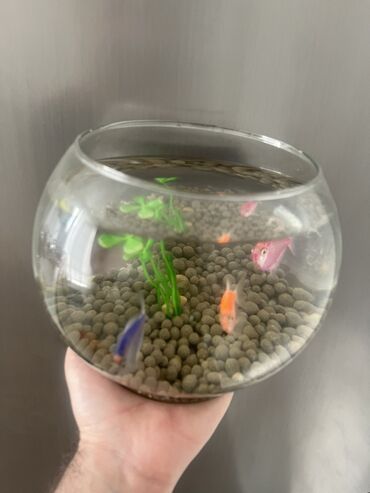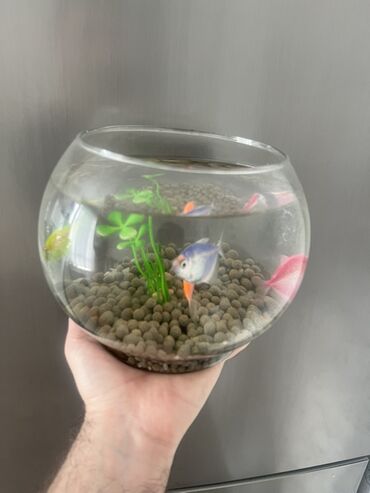 10 litrliy akvarium, dib örtüyü, bitgi dekor ve 5 eded rengli baliğ 25azn Akvarium baliglarinin satiwi 🐬Ağ şəffav danio ve glofishler 0.40azn 🦈 Danio baligi olcu 2 sm+,reng qirmizi,benovwe,sari,ya...