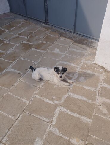 Ağ-qara ləkəli balaca it balaları - Cins: qarışıq - Rəng: əsasən ağ üzərində boz/qara ləkələr - Say: bir neçə balaca (şəkildə görünür) - Xüsusiyyətlər: aktiv, oyunbaz, sosial; açıq məkanda böyüyüb...