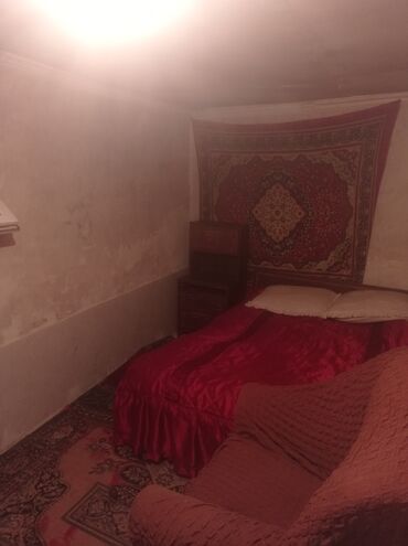 - Geniş iki nəfərlik çarpayı, yastıqlar və qalın qırmızı yorğan