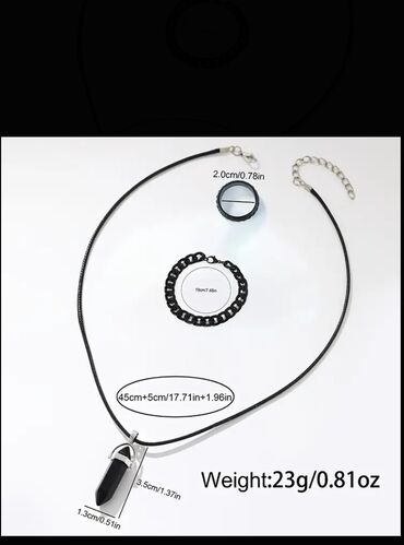 - Bilərzik: qara zəncir dizaynı, daxili çevrə 19 sm.
