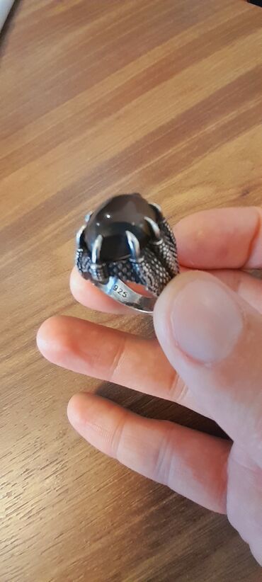 Real aliciyla razilasma var . ümüş kişi üzüyü, üstündə qara, düzbucaqlı daşla dizayn edilmişdir. Üzüyün bandı zəncirvari naxışlıdır və qara daş dörd dırnaqla bərkidilmişdir. Bu üzük gündəlik istifa...