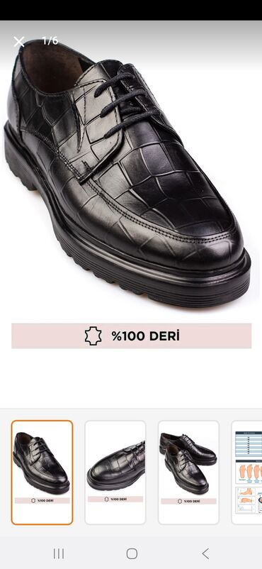 Məhsul: Kişi dəri ayaqqabısı - Ölçü: 40 - Material: 100% dəri (üzərində “%100 DERİ” qeyd olunub) - İstehsal: Türkiyə (deri türk) - Rəng: Qara - Dizayn: Krokodil naxışlı üst hissə, klassik bağcılı ...