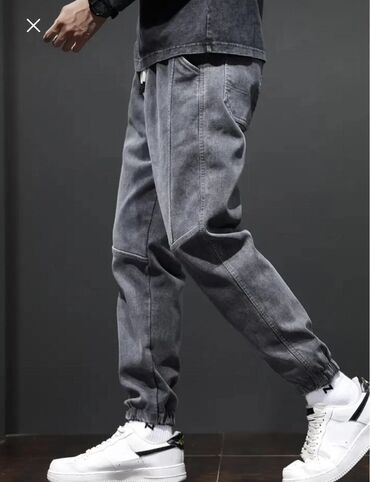 Kişi cins jogger şalvarı – tünd boz yuyulma rəngi ilə.