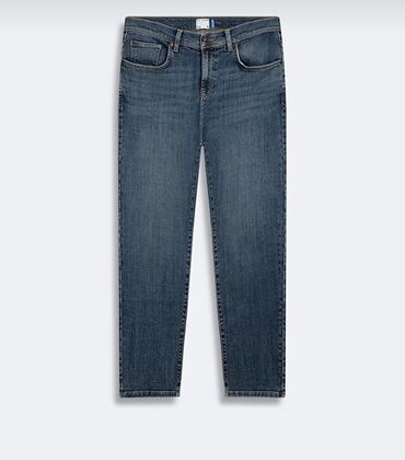 Mavi-açıq yuyulmuş rəngdə denim şalvar. Klassik düz kəsim, bel hissəsi fermuar və düymə ilə bağlanır. Öndə iki yan cib, arxada iki cib. Kəmər üçün ilgəklər mövcuddur. Kalça və diz hissəsi rahat otu...