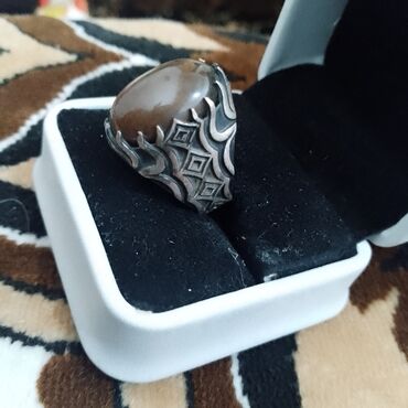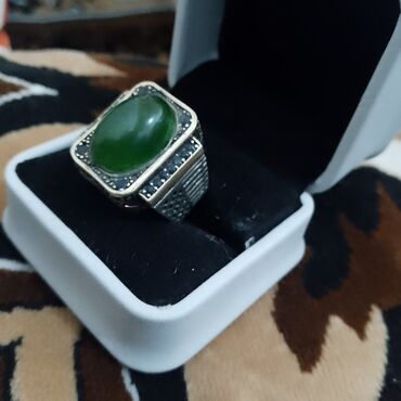 Kişi üzüyü – orijinal dizaynlı, geniş halqalı gümüş 925 prob . Üzərində dərin yaşıl rəngli, iri, çoxbucaqlı kəsimli mərkəzi daş yerləşdirilib; Klassik və İslam motivlərin birləşdiyi, diqqətçəkən və...