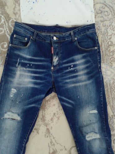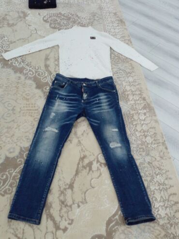 - Cins şalvar: DSQUARED2 etiketli, ölçü 50. Tünd mavi 2 sede geynilibiyib iconan alinib dsg ikisi biryerde 80