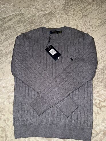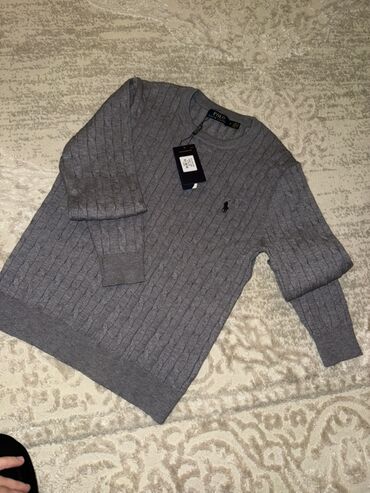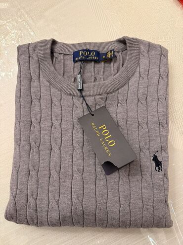 Polo Ralph Lauren trikotaj sviter/polo köynək - Rəng: açıq boz - Kəsim: kabel (burma) naxışlı trikotaj - Yaxa: klassik polo yaxası, 3 düyməli planka - Qol: uzunqol, sonlarda sıx rezin manjetlər - B...