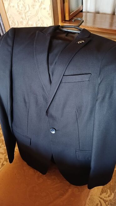 Klassik kişi pencəyi - Rəng: qara, incə zolaqlı (pinstripe) - Model: tək sətirli, iki düyməli ön bağlama - Yaxa: klassik haşiyəli (notch lapel) - Ciblər: iki ədəd qapaqlı yan cib, 1 ədəd sinə cibi...