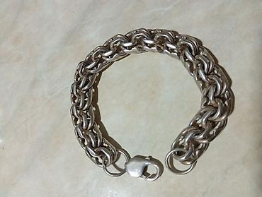 - Material: gümüş (vizual olaraq parlaq, ağır və sıx hörgü)