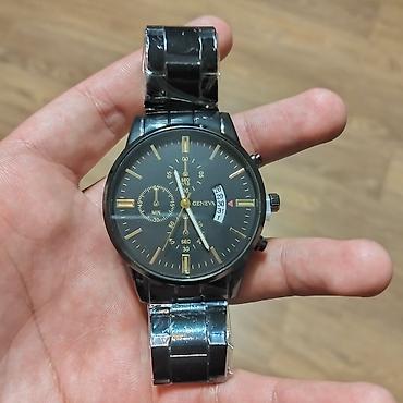 GENEVA kişi qol saatı – klassik və idman üslubunun mükəmməl sintezi - Korpus və qolbağ: paslanmayan poladdan, qara rəngli metal qolbağ - Siferblat: parlaq qara-mavi tonlarda, kontrast mavi indeksl...