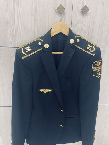 Məhsul: Rəsmi forma gödəkçəsi – Azərbaycan Dövlət Dəmir Yolları (ADDY) atributları ilə Təsvir: - Rəng: Tünd göy/qara ton - Model: Klassik iki düyməli rəsmi gödəkçə, çiyin epoletləri və qızılı bəzə...