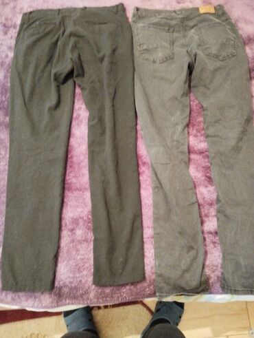 Hər iki şalvar gündəlik geyim üçün uyğundur, rahat hərəkət imkanı verir və müxtəlif köynək/sviterlərlə asan uyğunlaşdırılır. Ölçü etiketləri görünmür; orta-böyük bədən ölçüsünə uyğun görünür.