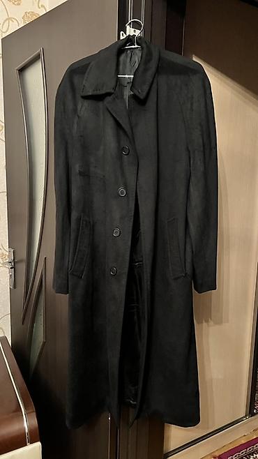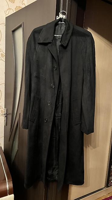 Kişi üçün klassik qara palto - Rəng: qara - Stil: düyməli, klassik yaxalı - Uzunluq: orta (buddan aşağı) - Ciblər: ön hissədə iki ədəd yan kəsimli cib - Daxili: romb naxışlı, yüngül qatlanmış/step...