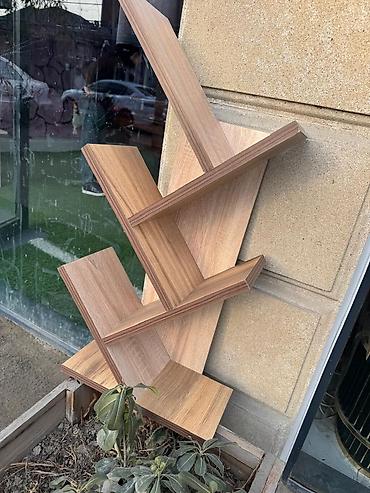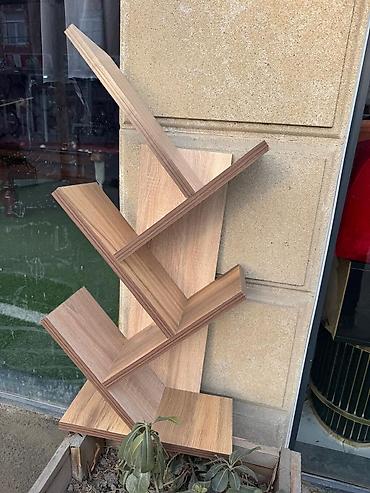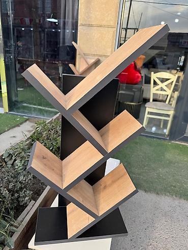 Məhsul: Dayaqlı “ağac” formalı kitab rəfi - Dizayn: Şaquli gövdə və hər iki tərəfə diaqonal yerləşdirilmiş V formalı rəflər; müasir, dekorativ “ağac budağı” görüntüsü yaradır. - Tutum: Bir neçə sə...