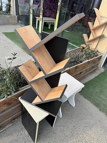 Məhsul: “ağac” formalı kitab rəfi - Dizayn: Ağ rəngdə, dekorativ ağac budaqları formasında mərtəbəli quruluş. Diagonal yerləşdirilmiş 8 ədəd bölmə (budaq) kitabları və jurnalları bucaq altında sax...