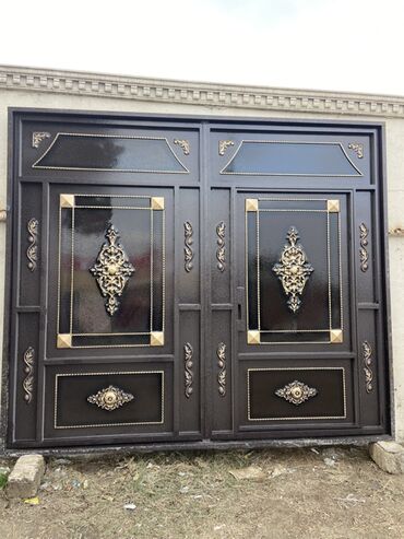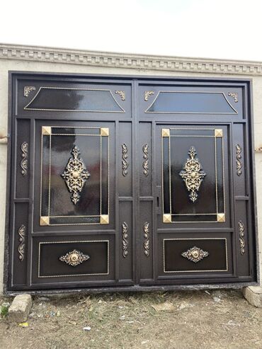 Dəmir Həyət darvazası, Yana açılan, Mexaniki, Qapı ilə, rəng - Qara, Kredit yoxdur