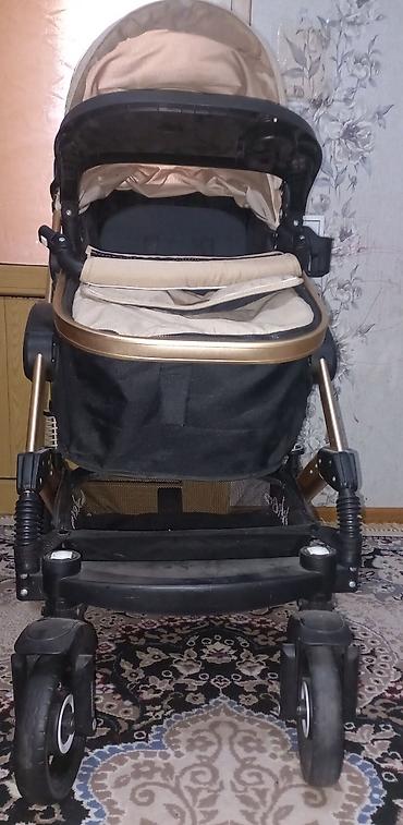 Uşaq arabası – çoxfunksiyalı, rahat və praktik model. - Rəng: qəhvəyi/bej tonları - 4 təkərli konstruksiya, ön təkərlər çevik manevr üçün fırlanandır - Geniş, kölgəlikli tənzimlənən tent - Ön tərə...